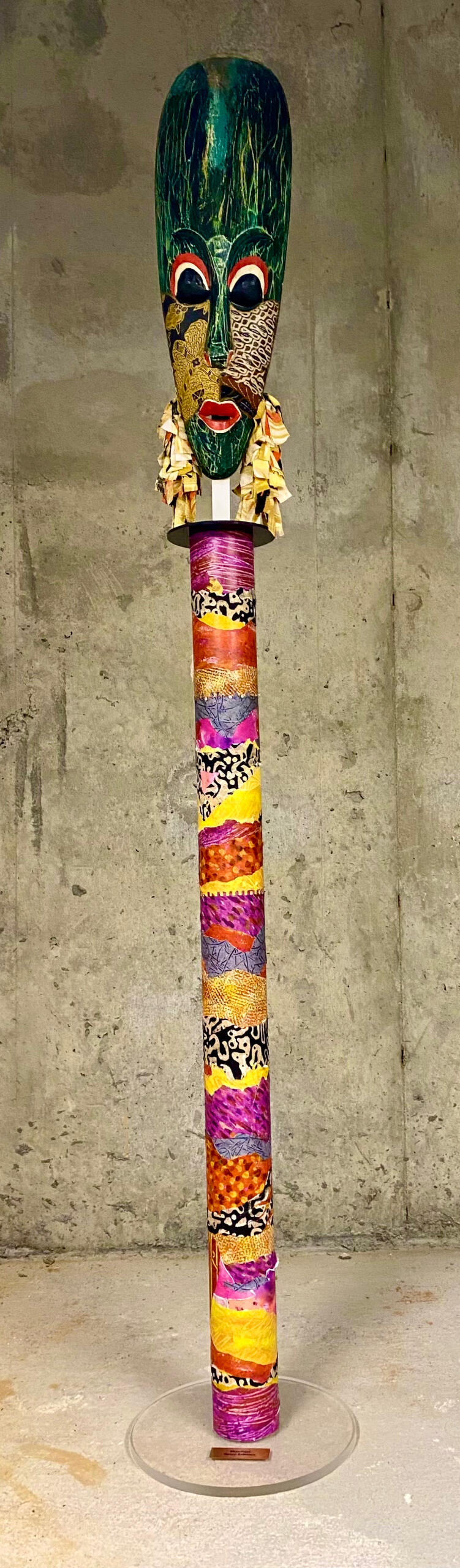 Showtime! – Mixed Media Art Pole with African Mask and Stage-Ready Style